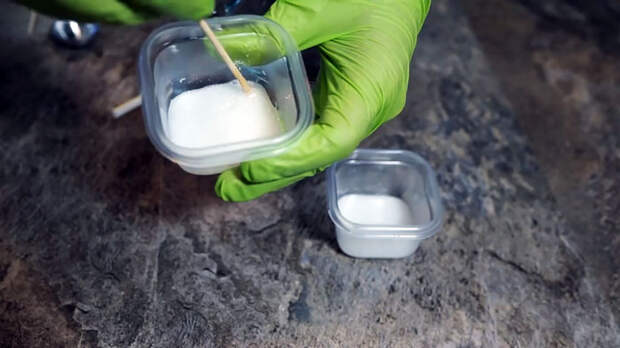 Размешайте смесь и насыпьте ее в небольшие контейнеры, подойдут стаканчики от сметаны или йогурта.