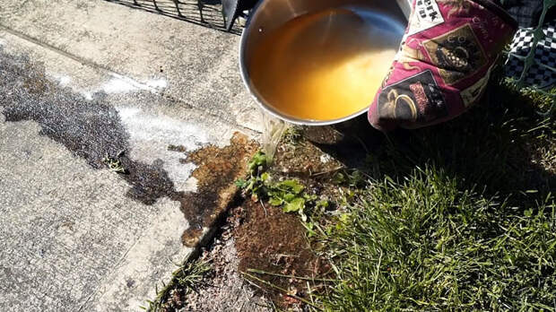 Горячей жидкостью полейте муравьиные дорожки и их колонию. Кипяток убьет часть муравьев на поверхности земли, а перец заставит оставшихся покинуть колонию.