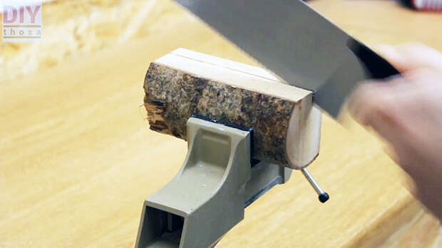 С помощью пилы и фуганка вырезаем из берёзового полена прямоугольную плашку толщиной приблизительно 2 см.