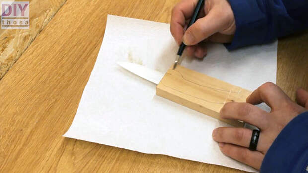 Так можно использовать подходящую ручку от любого ножа, либо просто нарисовать желаемый контур. После этого я выпилил контуры ручки лобзиком.