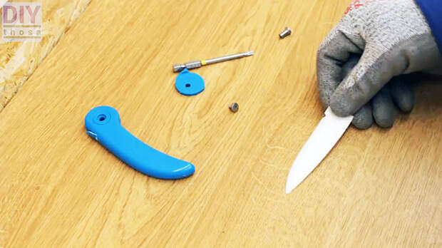 Если вы тоже изготавливаете ручку для керамического лезвия, ни в коем случае не пытайтесь вставить его с большим усилием в слишком узкую прорезь. Керамика хрупкий материал. Поэтому прорезь должна обеспечивать свободное движение в ней лезвия. Фиксация осуществляется только за счёт клея.