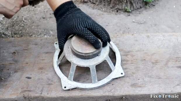 Корзина нам не понадобится, а постоянный кольцевой магнит, верхний фланец и нижний с керном пригодятся для изготовления самоделки.