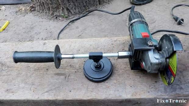 В гайку на конце стержня вкручиваем ручку с резьбой. Этой операцией, по сути, завершено изготовление и установка самоделки на болгарку.