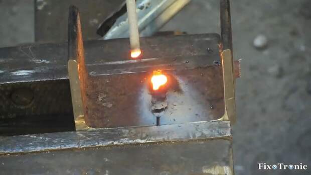 Соединяем их полками и зажимаем в таком положении в тиски, а стык завариваем изнутри и снаружи.