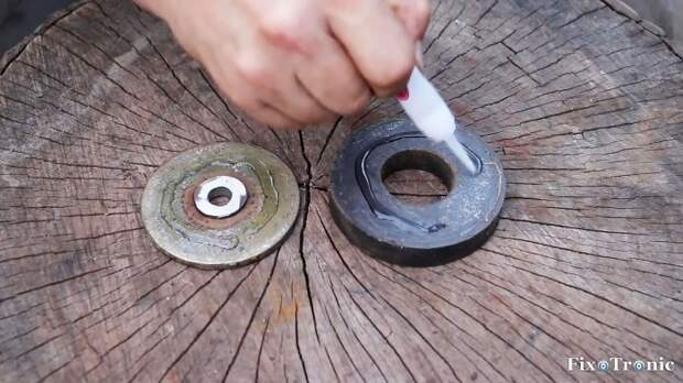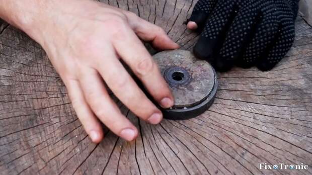Попытаемся под это дело приспособить болгарку, снабдив ее съемной оснасткой на основе кольцевого постоянного магнита из звукового динамика.