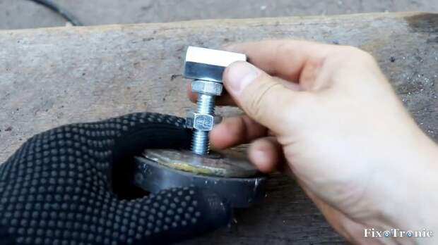 В удлиненную гайку узла с постоянным магнитом вкручиваем шпильку, на конце которой приварена гайка меньшего диаметра.