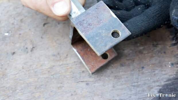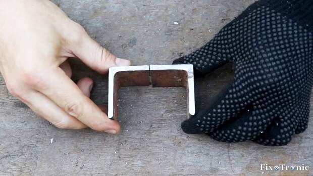 От подходящего по размеру стального равнополочного уголка отрезаем два фрагмента длиной около 35 мм.